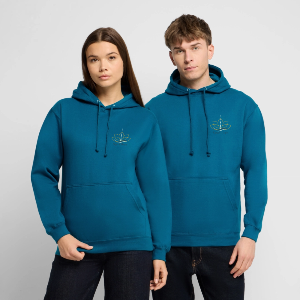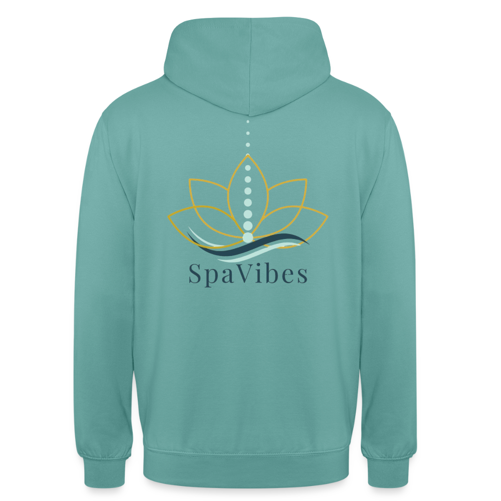 Omhul jezelf met rust en comfort met de SpaVibes Unisex Hoodie – perfect voor momenten van ontspanning of een casual look met een vleugje zen. Gemaakt van een duurzame mix van katoen en polyester met een zachte fleecevoering aan de binnenkant. De hoodie heeft een uniseks pasvorm: wat strakker bij heren, wat losser bij dames. Combineer stijl, warmte en spiritualiteit met dit unieke ontwerp met lotusbloem en "SpaVibes"-opdruk.