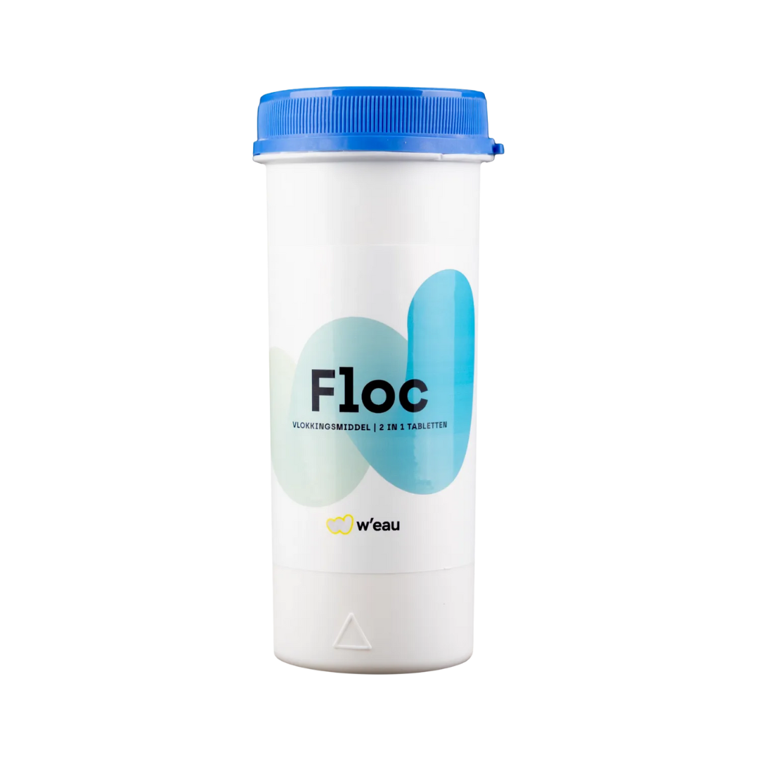 De W’eau Vlokmiddel Tabletten 2-in-1 zijn krachtige vlokmiddelen die helpen om je zwembadwater helder en schoon te houden. De tabletten binden fijne, zwevende deeltjes in het water tot grotere vlokken, die naar de bodem zakken. Vervolgens verwijdert de filterinstallatie het grootste deel van deze deeltjes uit het water. Bij regelmatig gebruik zorgen de tabletten voor kristalhelder water en beperken ze de groei van algen gedurende het hele zwemseizoen.